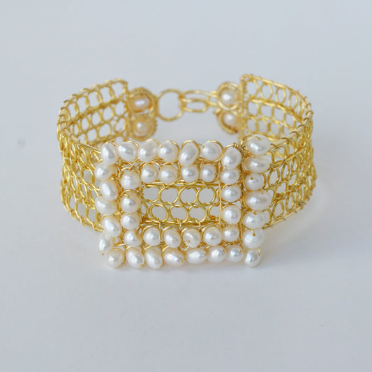 Brazalete Medallon de Perlas Cuadrado
