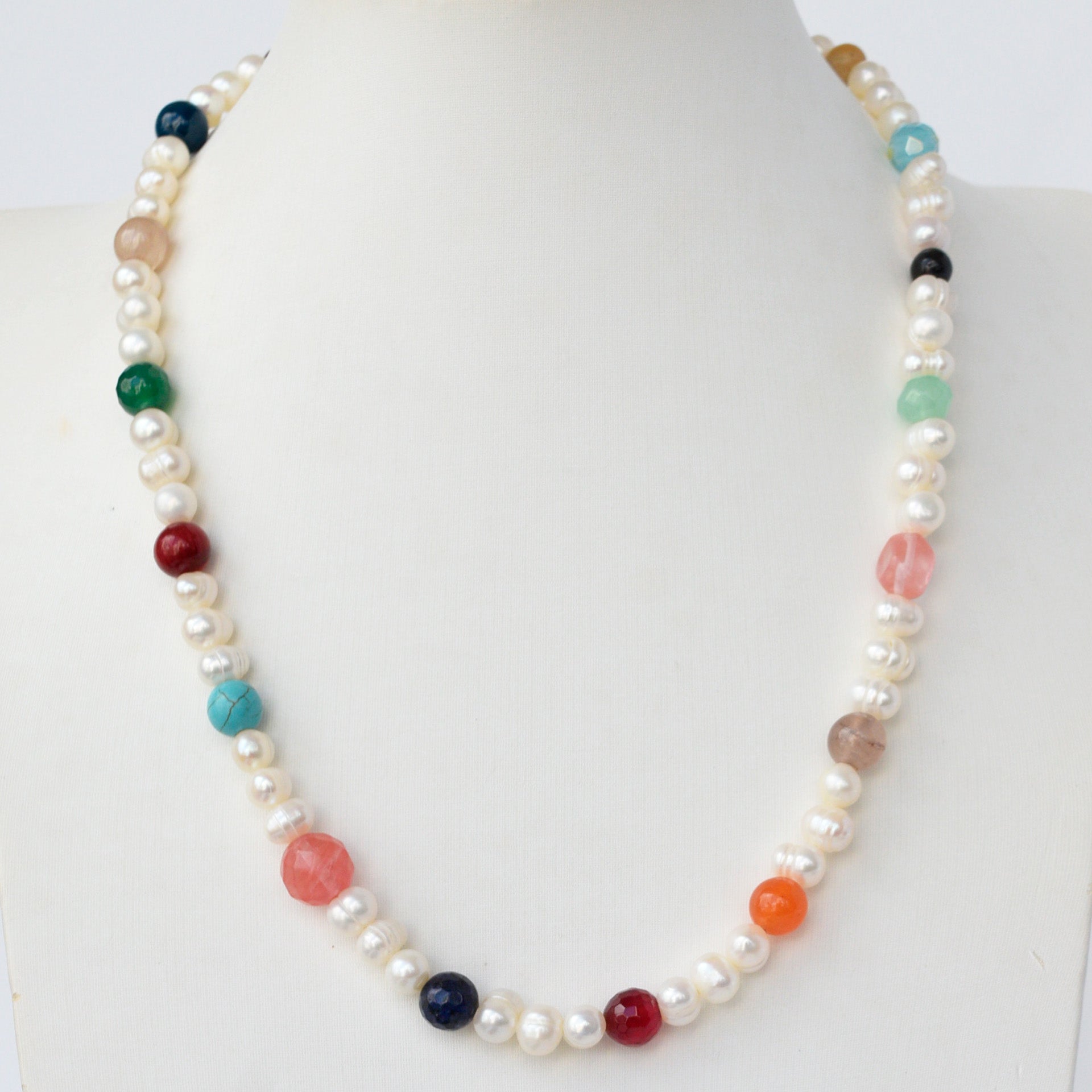 - Perlas con piedras grandes de diferentes colores intercaladas
